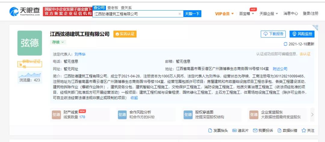 江西弦德建筑工程有限公司成立于2021年4月,注册资本1000万元人民币,经营范围包括房屋建筑和市政基础设施项目工程总承包;建筑智能化工程施工,文物保护工程施工,消防设施工程施工,地质灾害治理工程施工等。