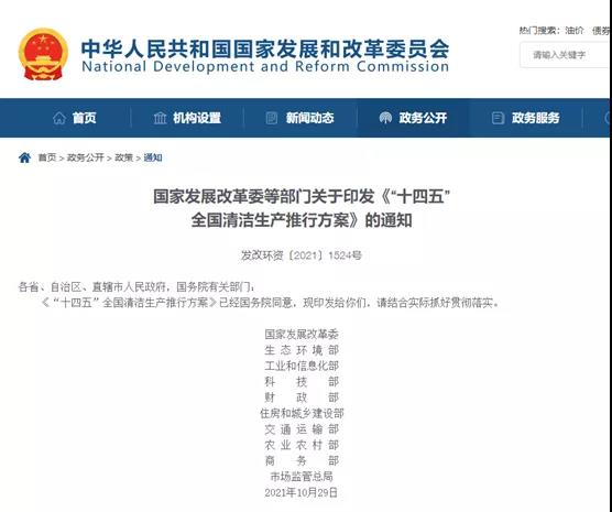 近日,国家发展改革委、生态环境部、住房和城乡建设部等十部门联合印发《"十四五"全国清洁生产推行方案》(以下简称《方案》),对下一步全国清洁生产工作作出部署。