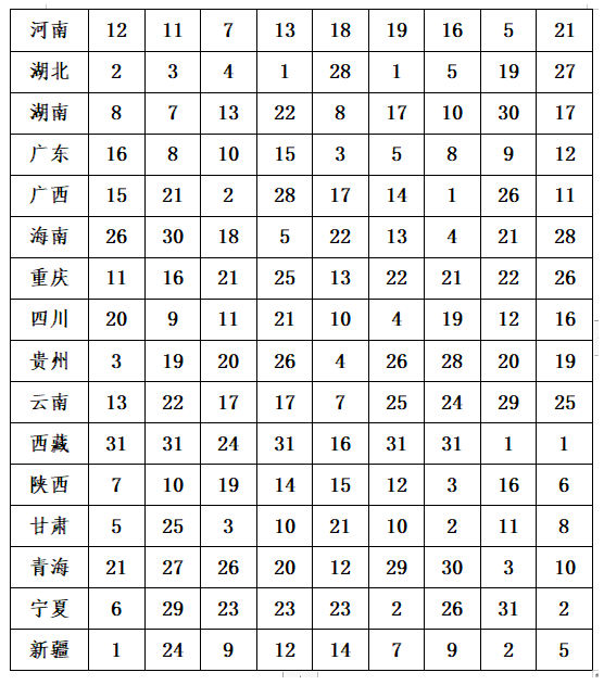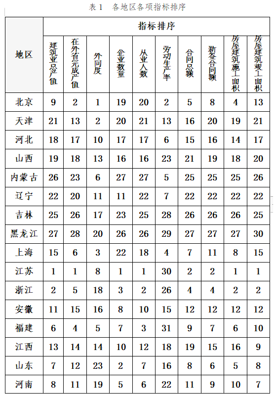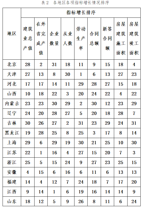 (六)各地区指标及其增长情况排序 表1和表2分别列出了各地区各项指标及其增长情况的排序结果。