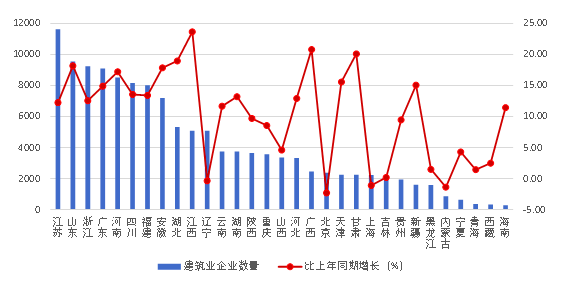 2022 年上半年各地区建筑业企业数量及其增长情况