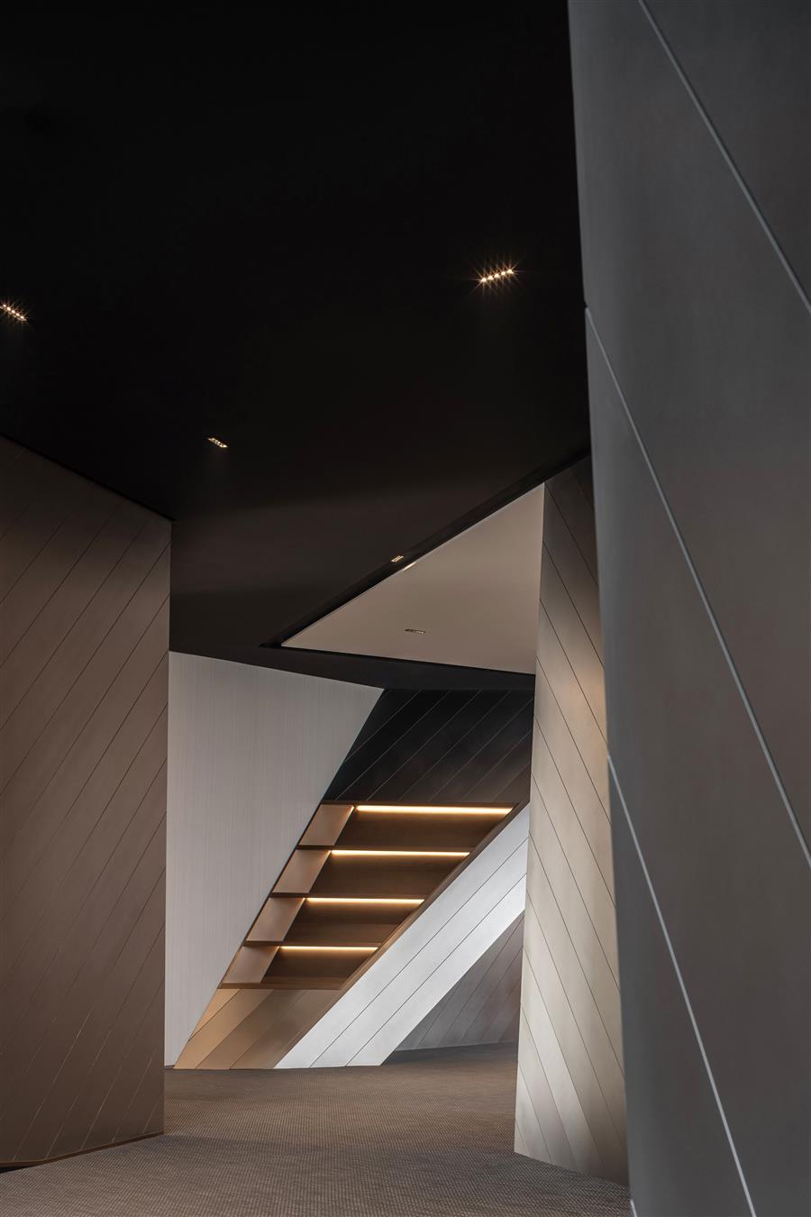 达观团队以一个具有空间逻辑和规则、满足建构要求的空间为基础,提取建筑的折线元素,通过相对自由的雕塑性而建造一个能够表达意志的办公空间。