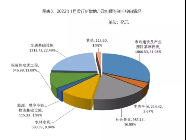 从资金投向看,1月发行的新增一般债券分别用于交通基础设施257.55亿元,社会事业221.91亿元,市政建设212.98亿元,农林水利139.78亿元,生态环保45.54亿元,其他115.50亿元。新增专项债券分别用于市政及产业园区基础设施1653.55亿元,交通基础设施1055.18亿元,社会事业763.23亿元,保障性安居工程646.98亿元,农林水利440.61亿元,生态环保168.88亿元,能源、城乡冷链物流基础设施115.33亿元。