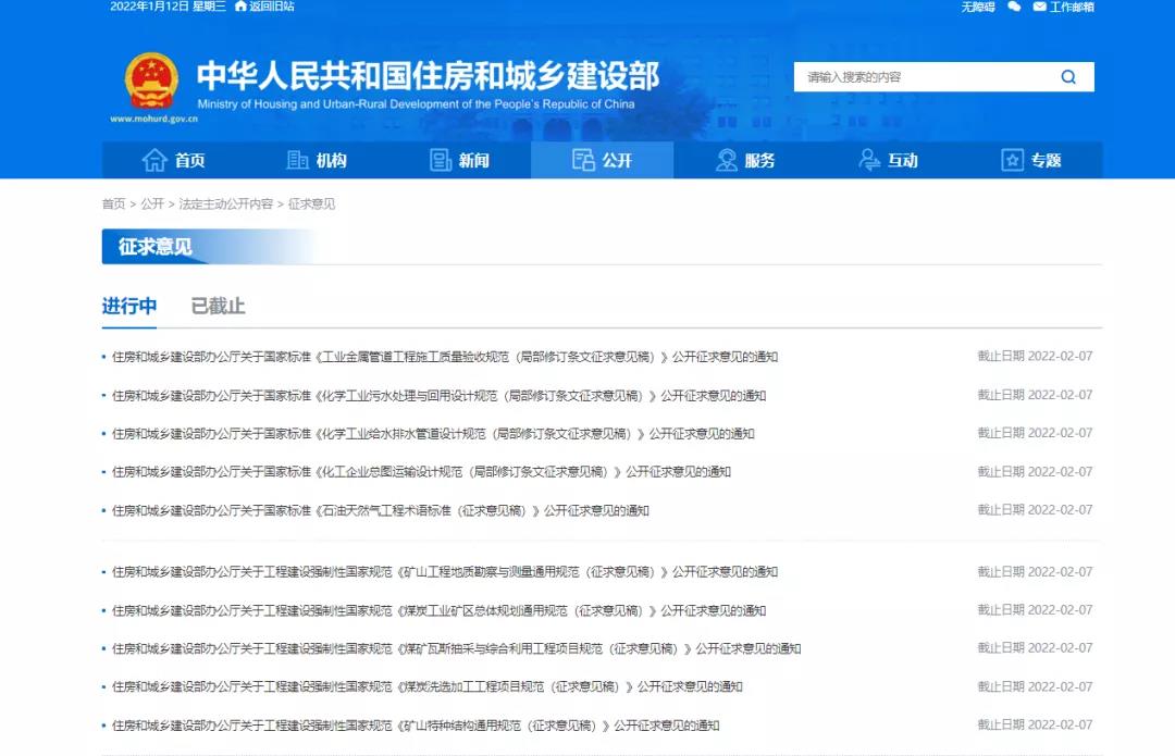 10:住房和城乡建设部办公厅关于国家标准《工业金属管道工程施工质量验收规范(局部修订条文征求意见稿)》公开征求意见的通知